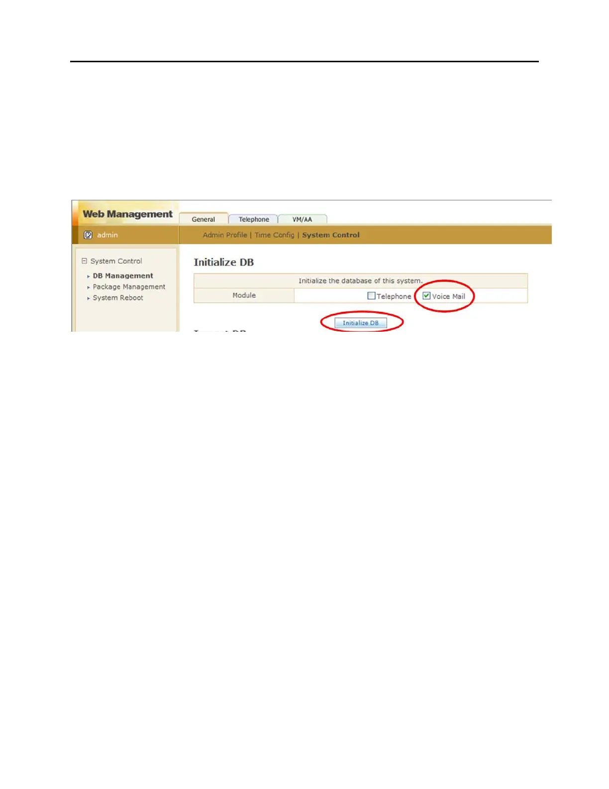 Check the box that says "Voice Mail" and then click "Initialize DB". Click "OK" to confirm.