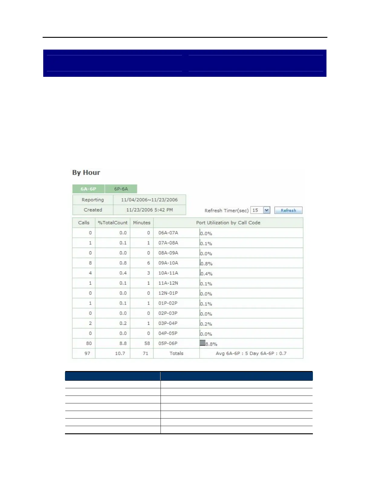 voicemail call statistics. The Statistics By Hour screen breaks down calls by the