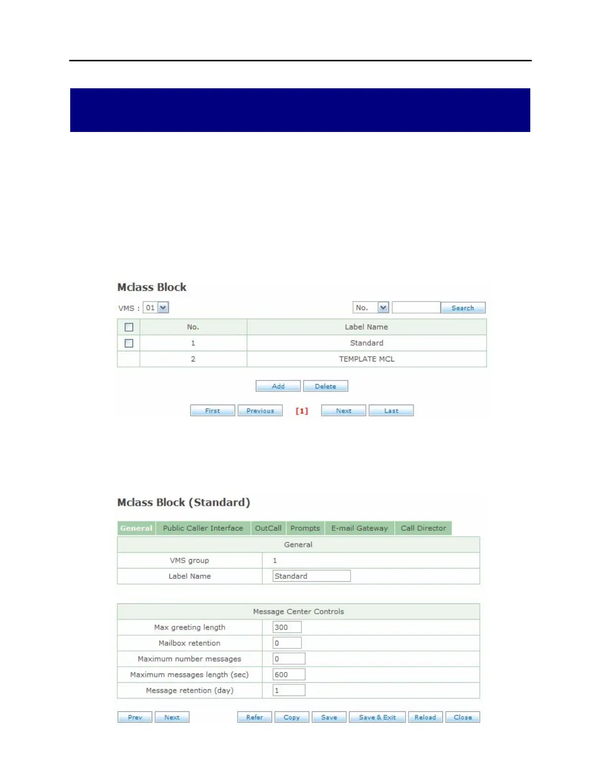 behaviors for groups of Mailbox blocks. MClass settings can be overridden by