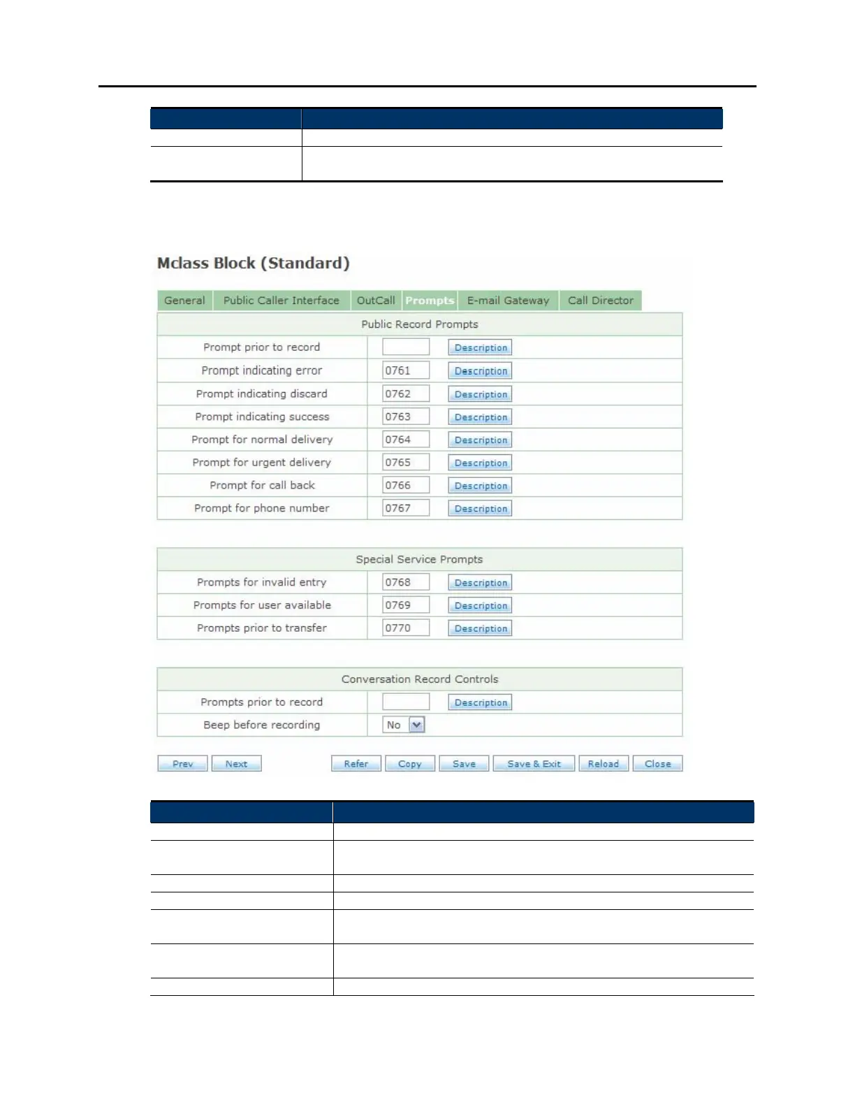 Prompt prior to record The prompt to play prior to the recording "beep"