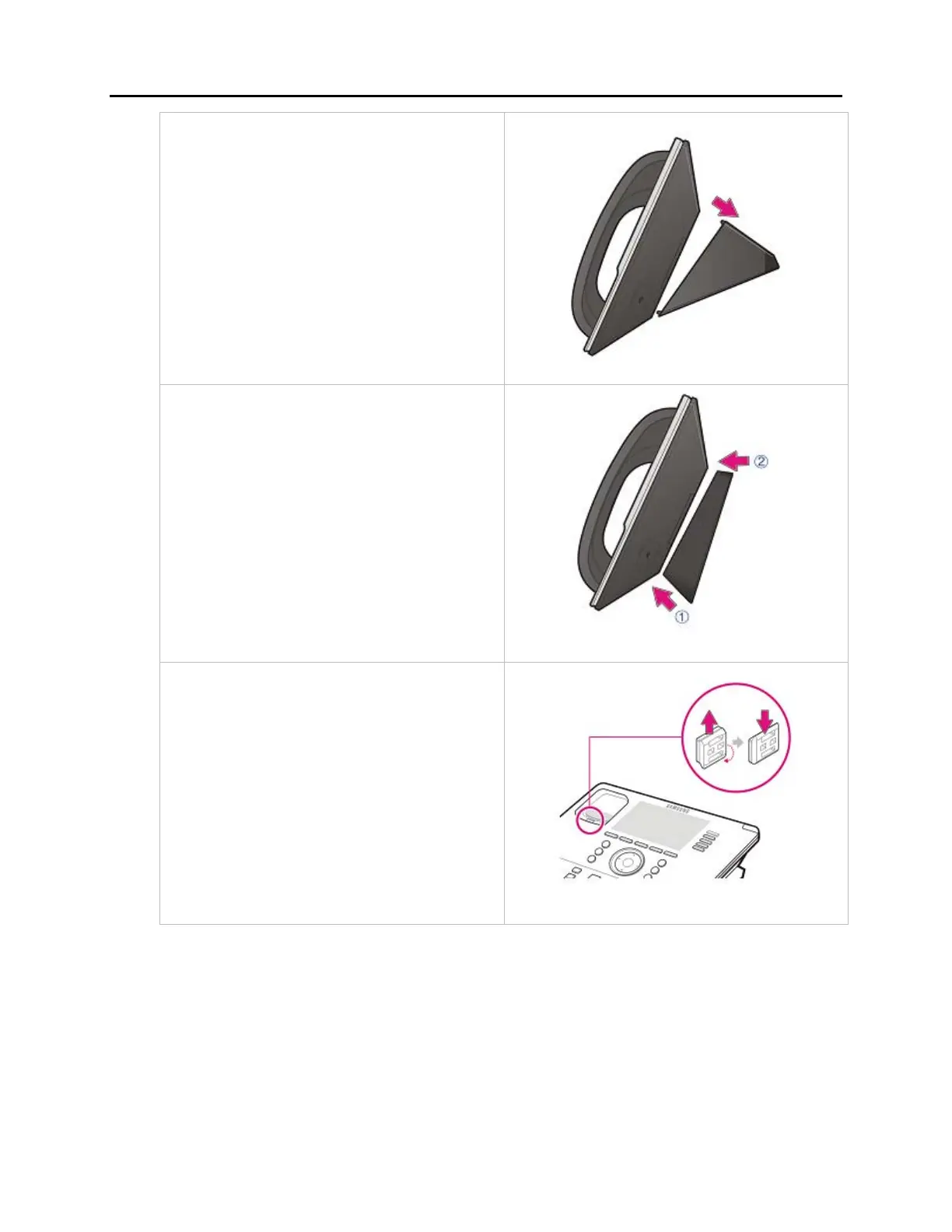 4. Pull out the handset rack, and then insert