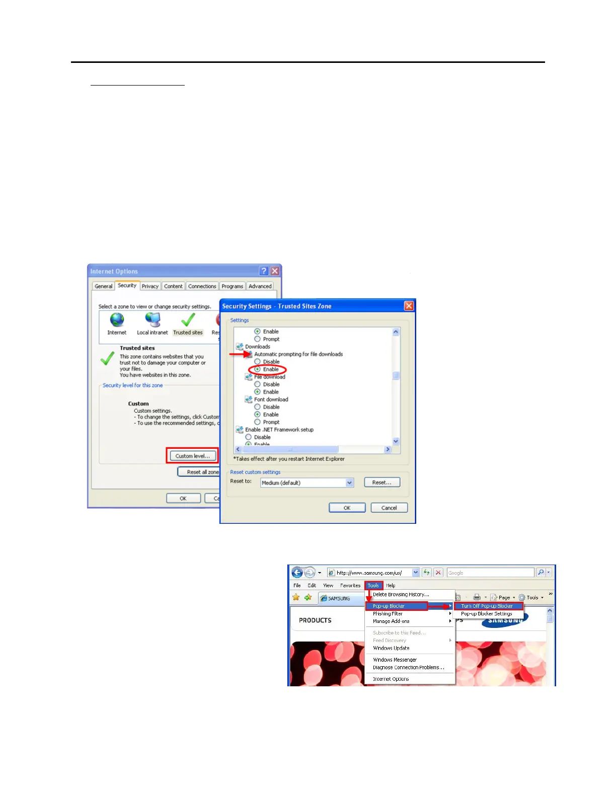 Figure 7.34 Security Settings to Enable Downloads
