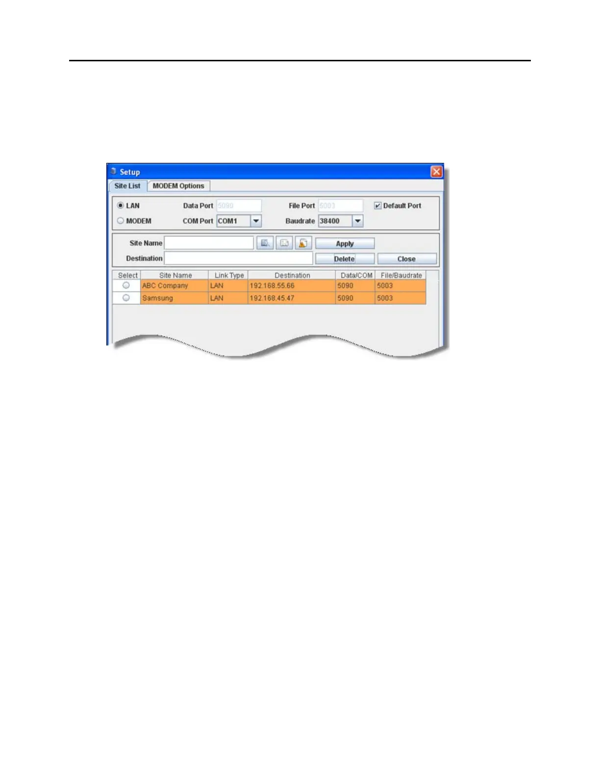 must enter a site into the Site list before connecting to an OfficeServ System.