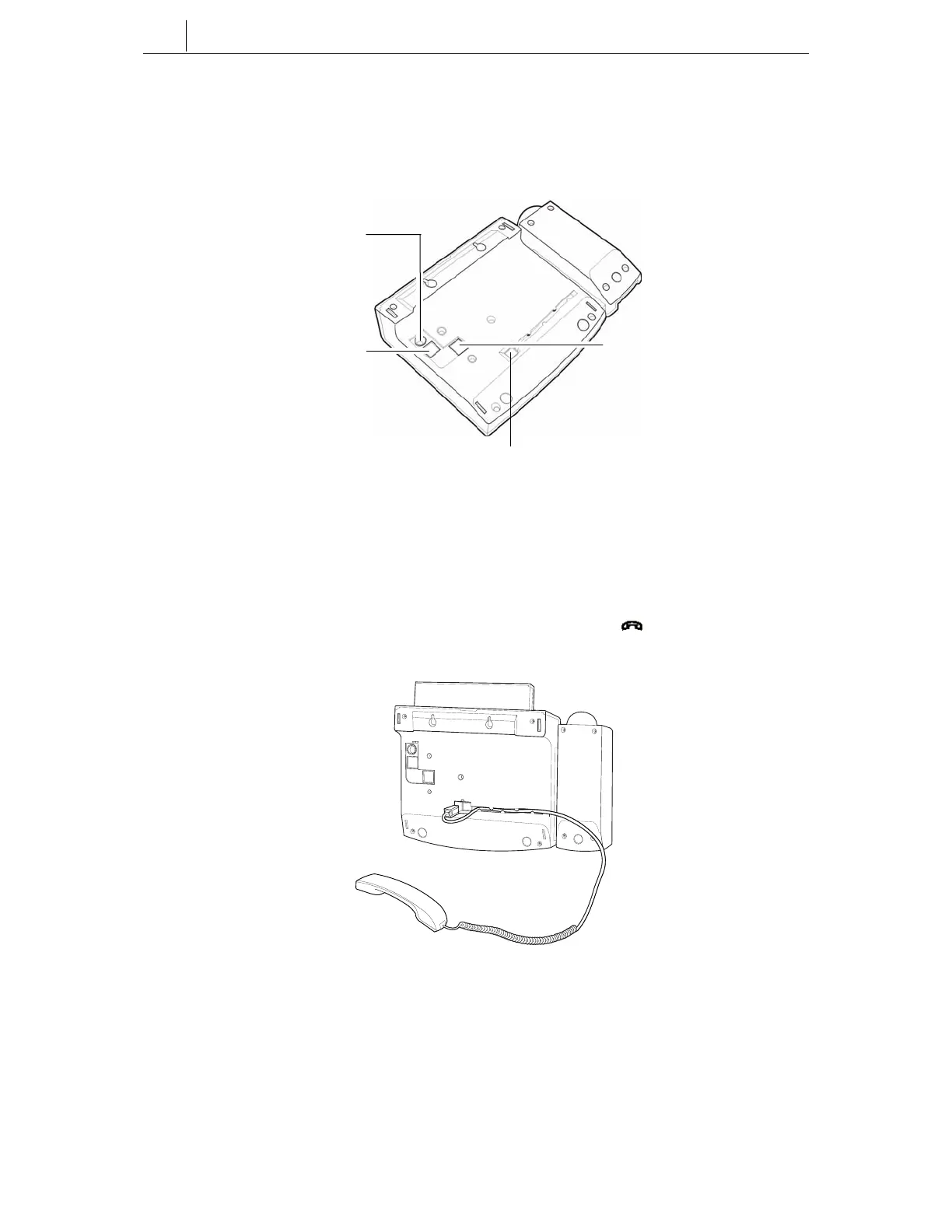 The base of the phone contains a handset connection jack, power connection jack,