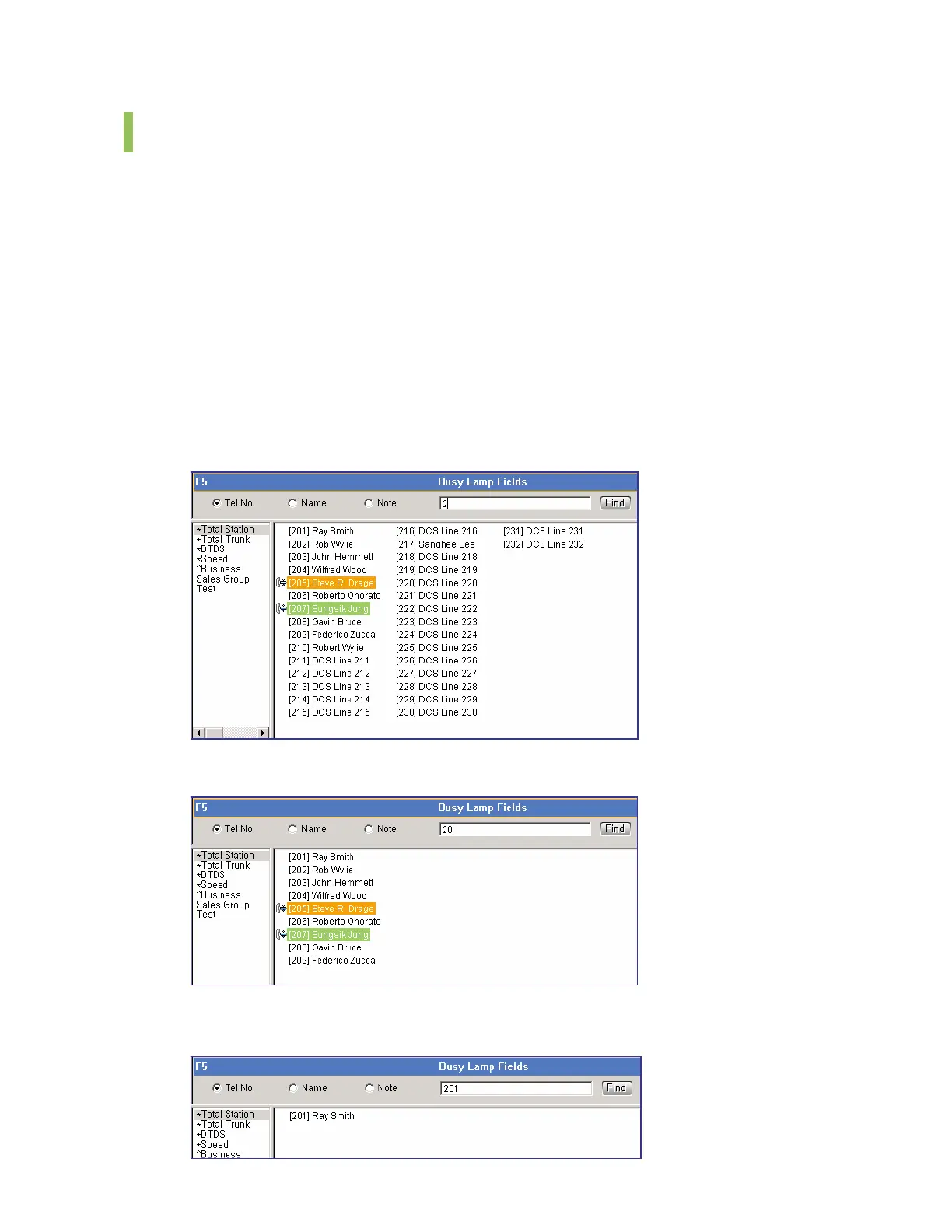 Enter ‘1’. Only the BLF device starting with ‘201’ is displayed.