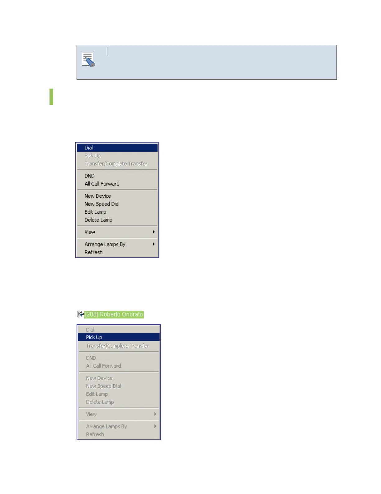 Select and right-click a BLF device that is being connected and can be picked up and click or