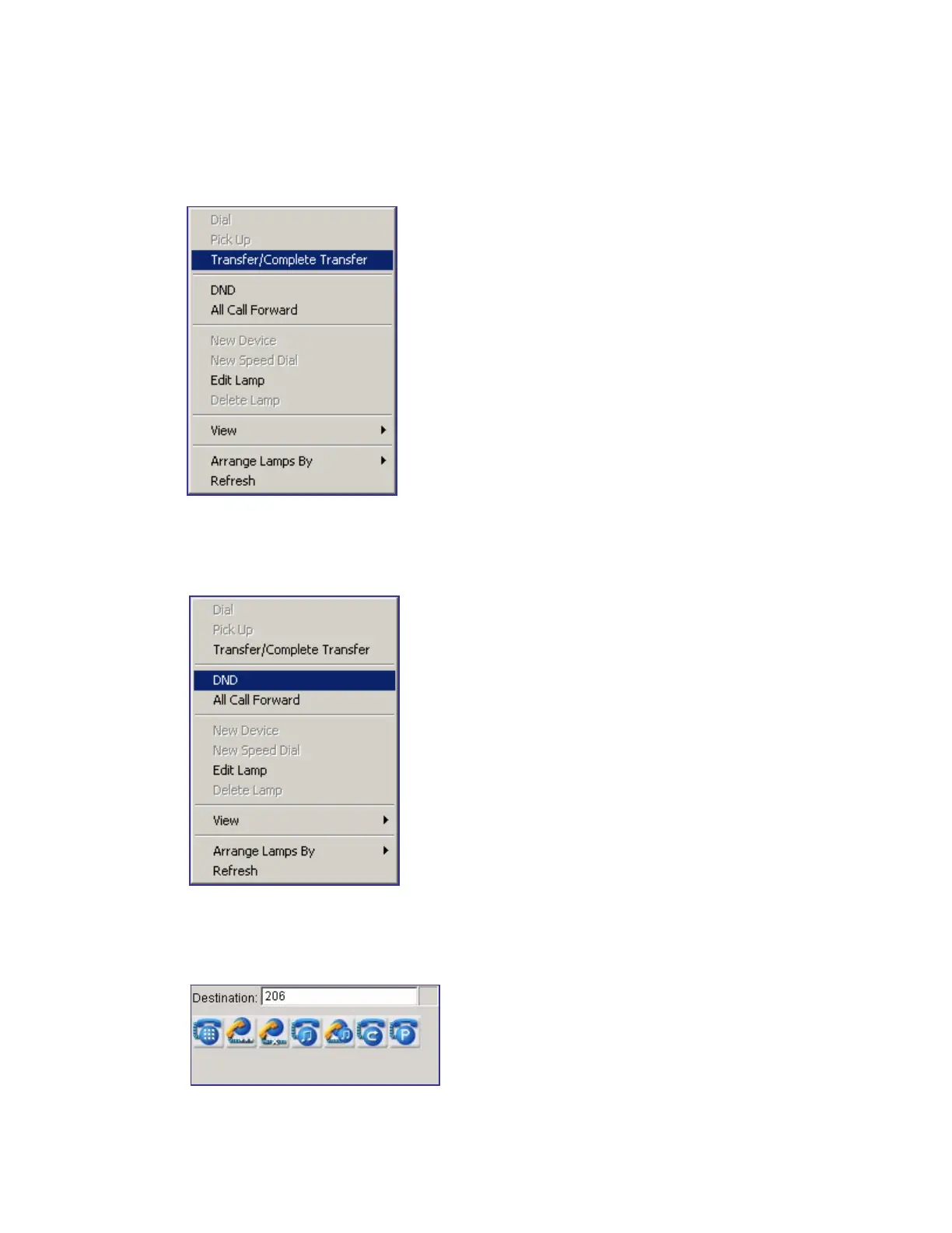 Select and right-click a BLF device and click or double-click Transfer/Complete Transfer during