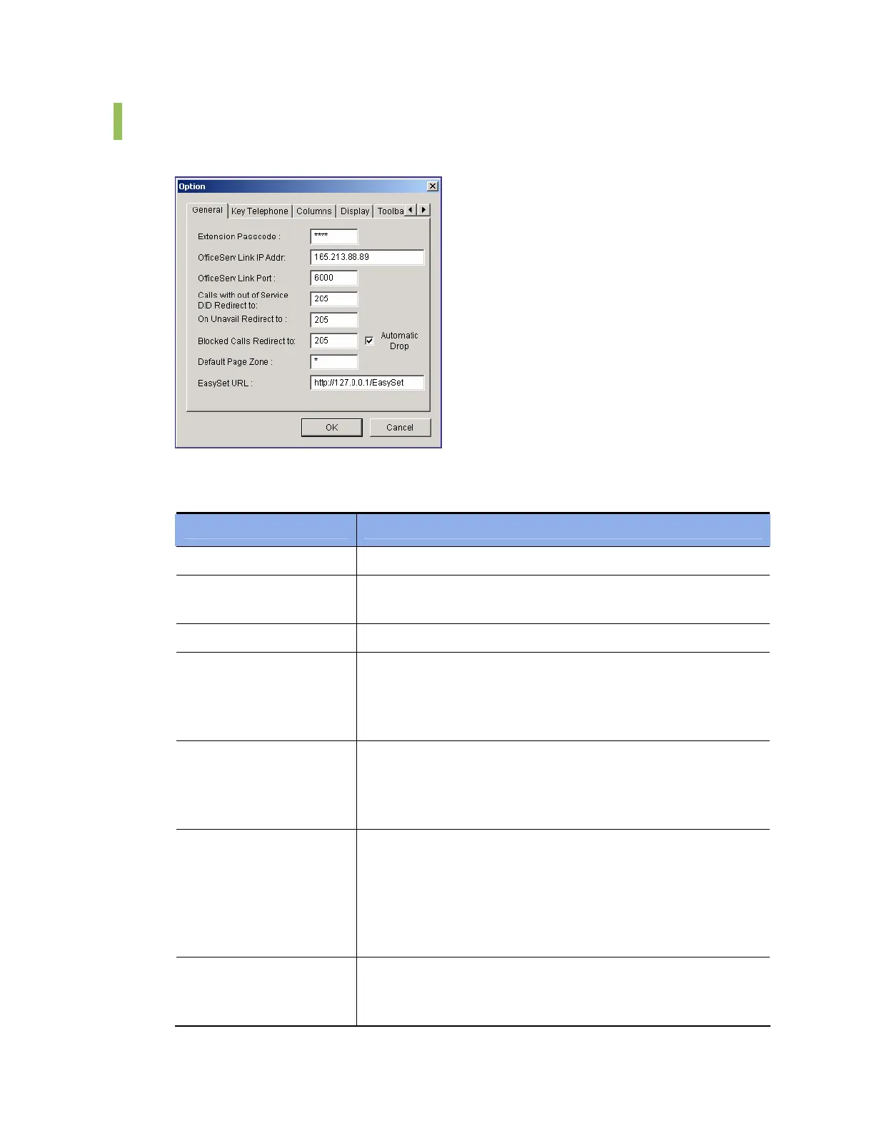 This tab enables the user to set general option values of the OfficeServ Operator.