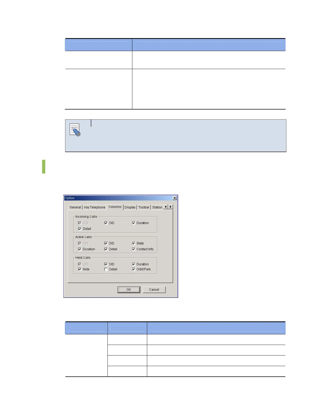 This tab enables the user to select the information to be displayed on the Incoming Calls,