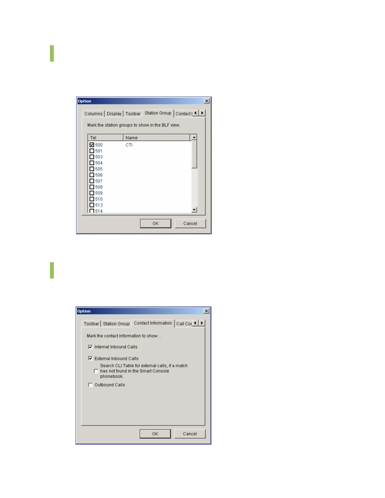This tab enables the user to set whether to display the CID of an incoming station call,