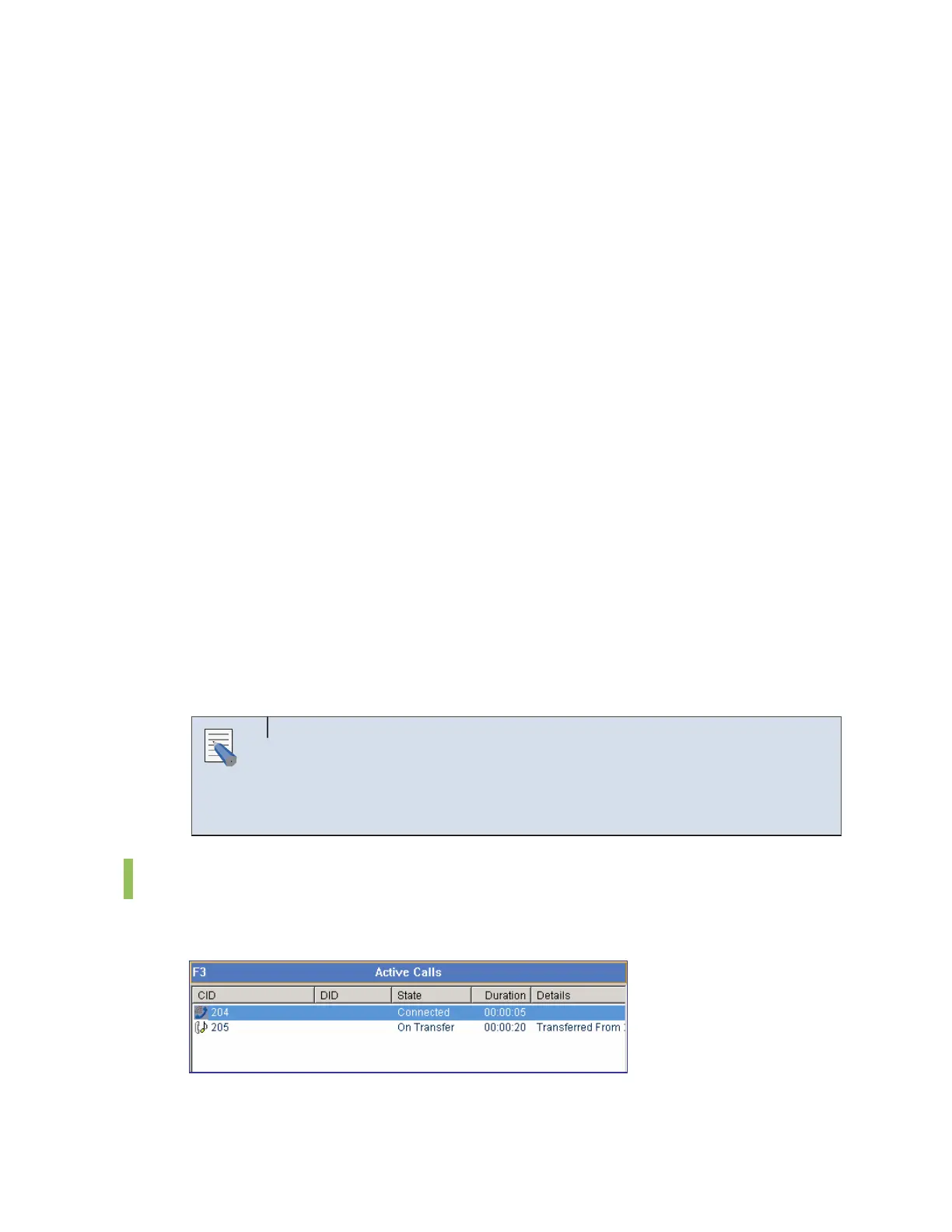 displayed in <Active Calls> window when the call transfer is attempted. Press the [Enter] key