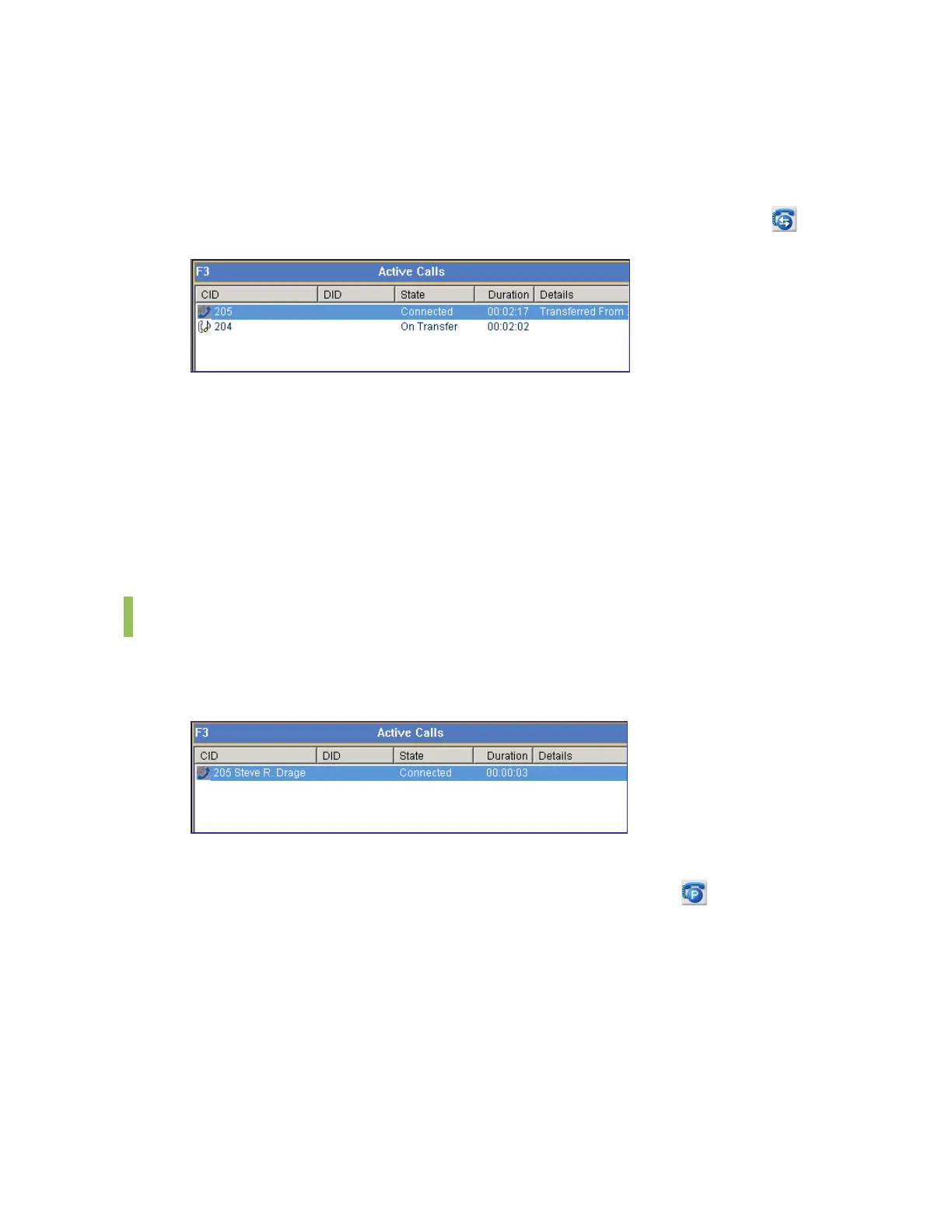 The operator can toggle a call between a ‘Connected’ station and a station ‘On Transfer ’, or