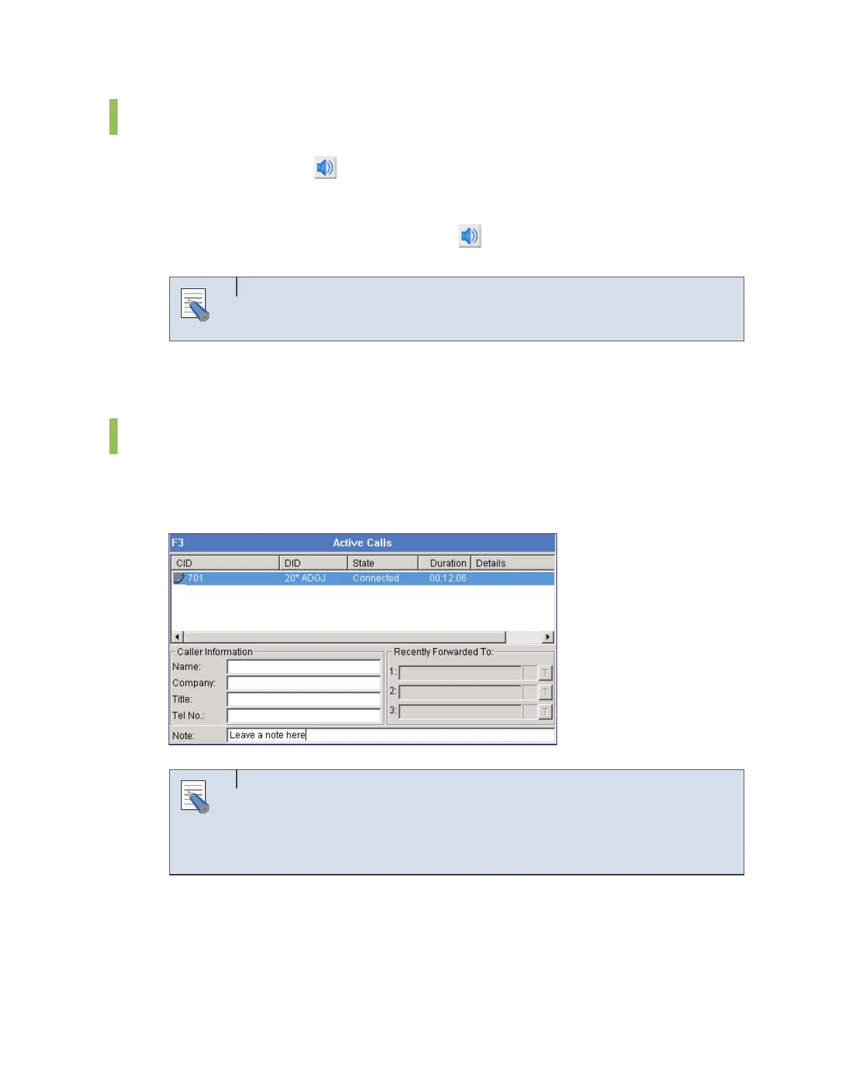 If a user holds a call after leaving a note in the [Note] column of the <Active Calls> window, the