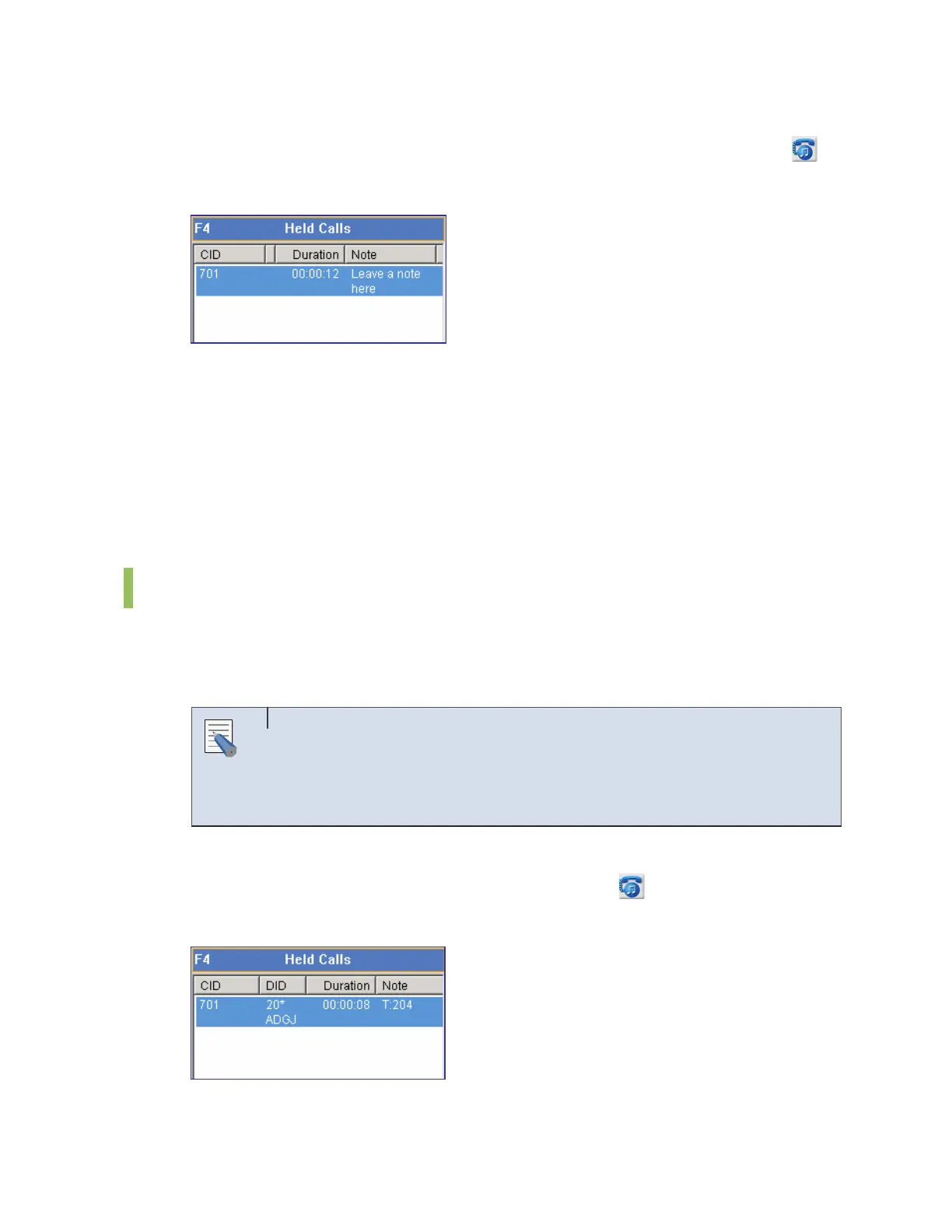 window and drop the call on the <Held Calls> window to hold the call with the note.