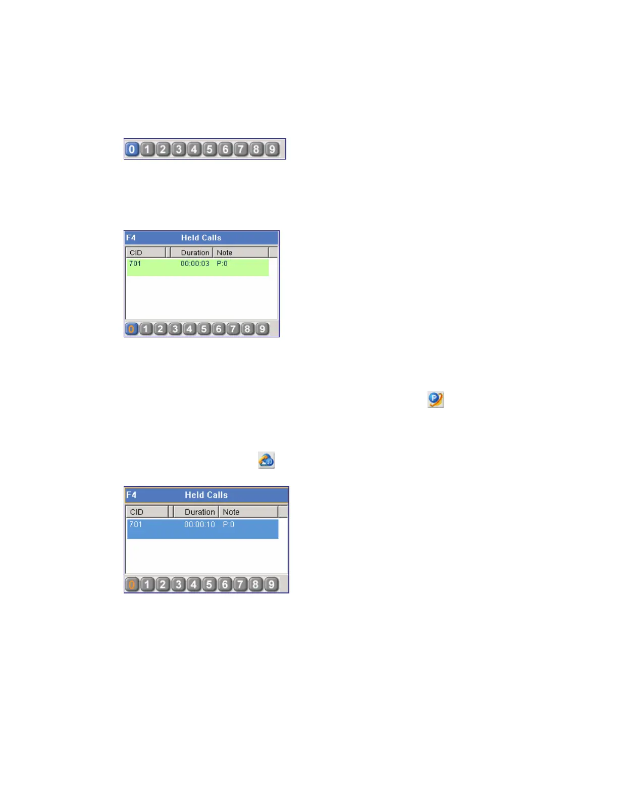 Press [F4] to open the <Held Calls> window, and press the [Tab] key to select number 0. Then,