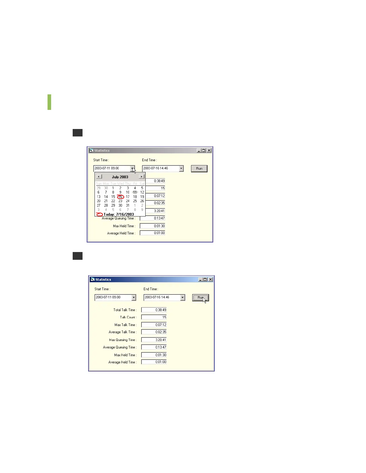 1 Select the [Statistics] menu from the [Run] to see the <Statistics> window.