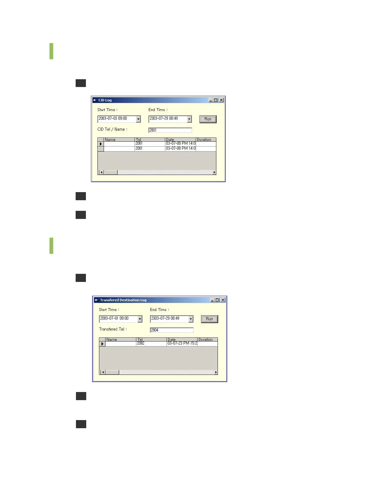 2 Enter the start time and end time for retrieving logs and the transfer destination number