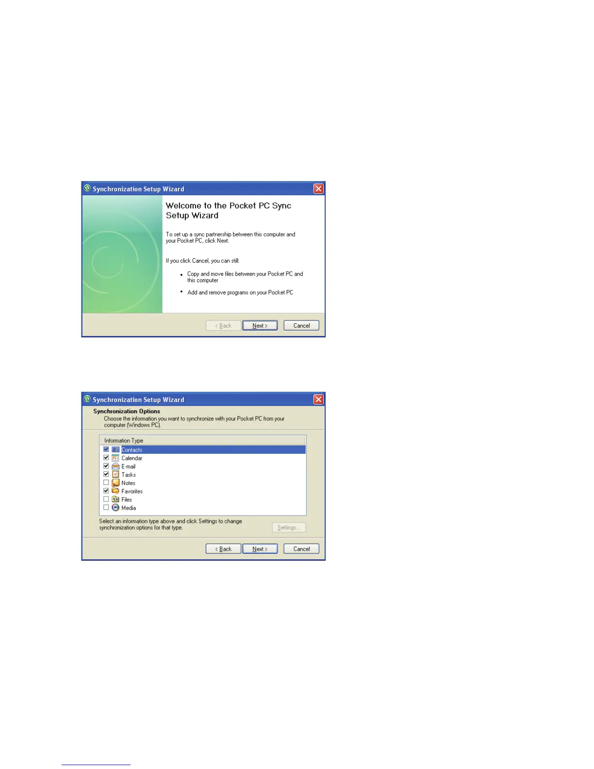 E-mail, Tasks, Notes, Favorites, Files, and Media