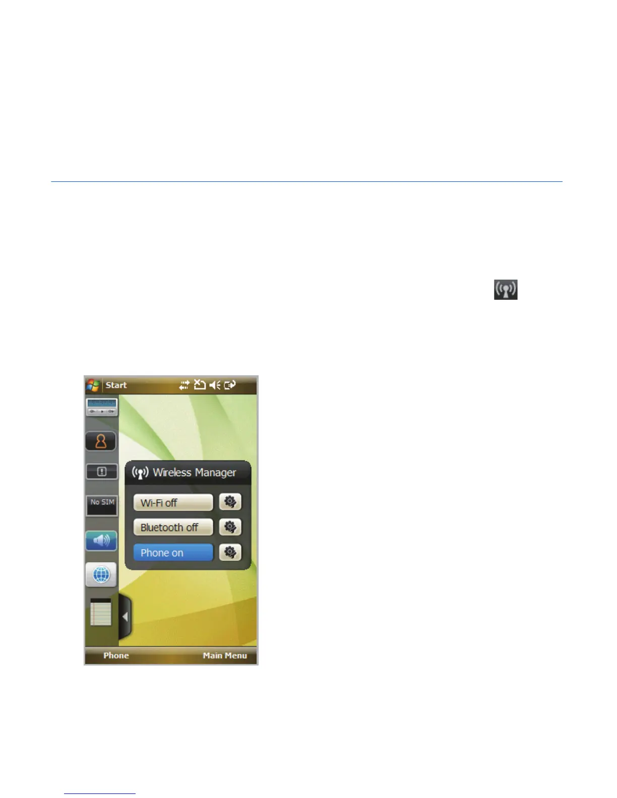 From the Today screen, drag the Wireless Manager widget ( ) onto