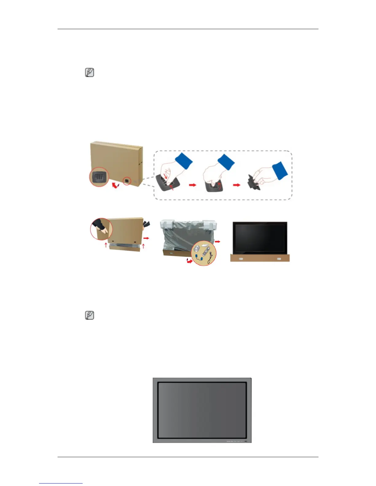 • After unpacking, you may use the lower part of the package box as a temporary stand for
