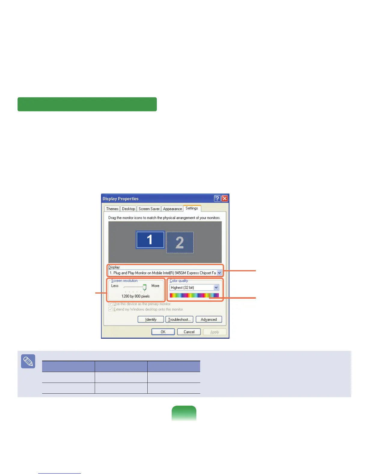 ItisrecommendedtosettheresolutionandcolorqualitydependingontheLCDtypeofyourcomputerasthefollowing: