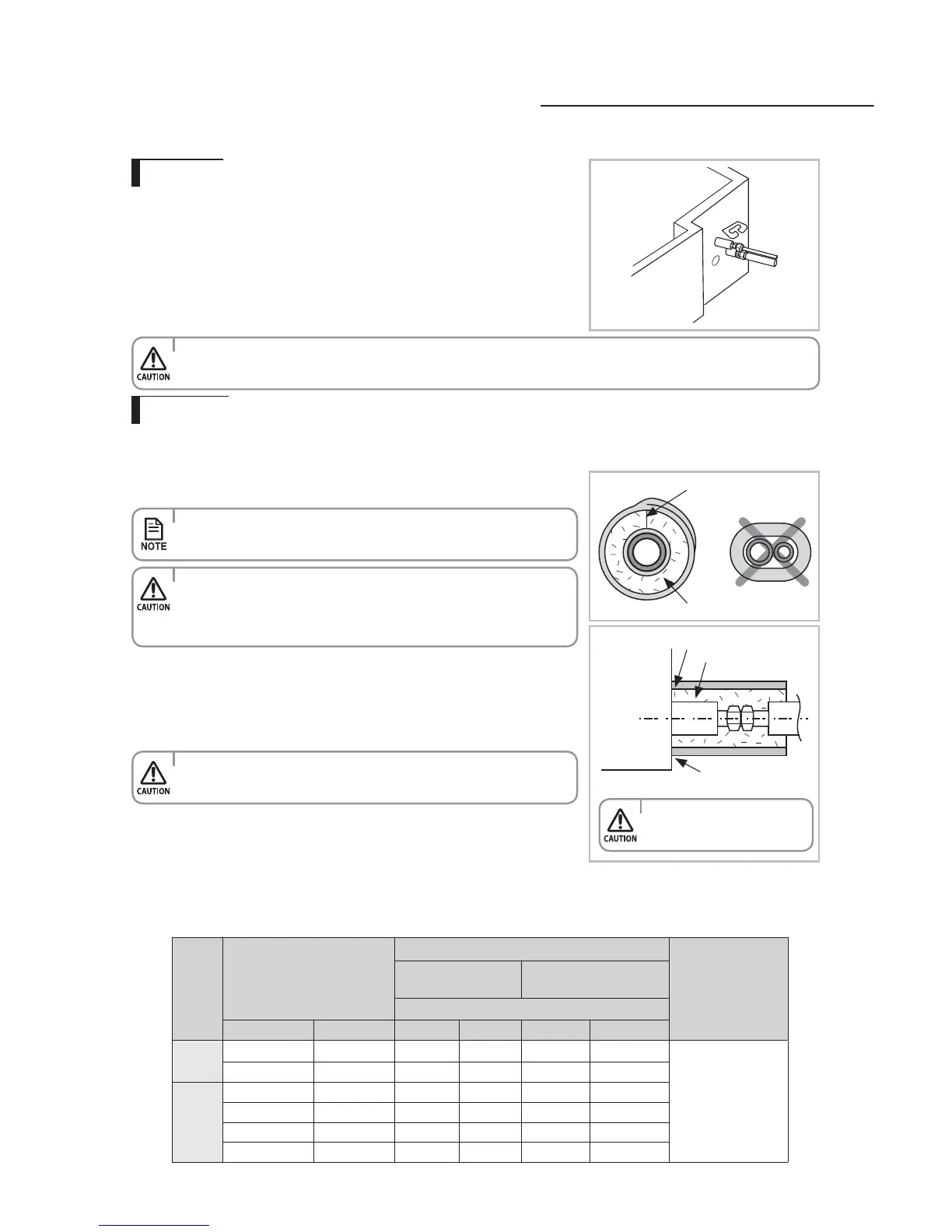 If installing in a high humidity condition, use one grade thicker insulator by referring to the table below.