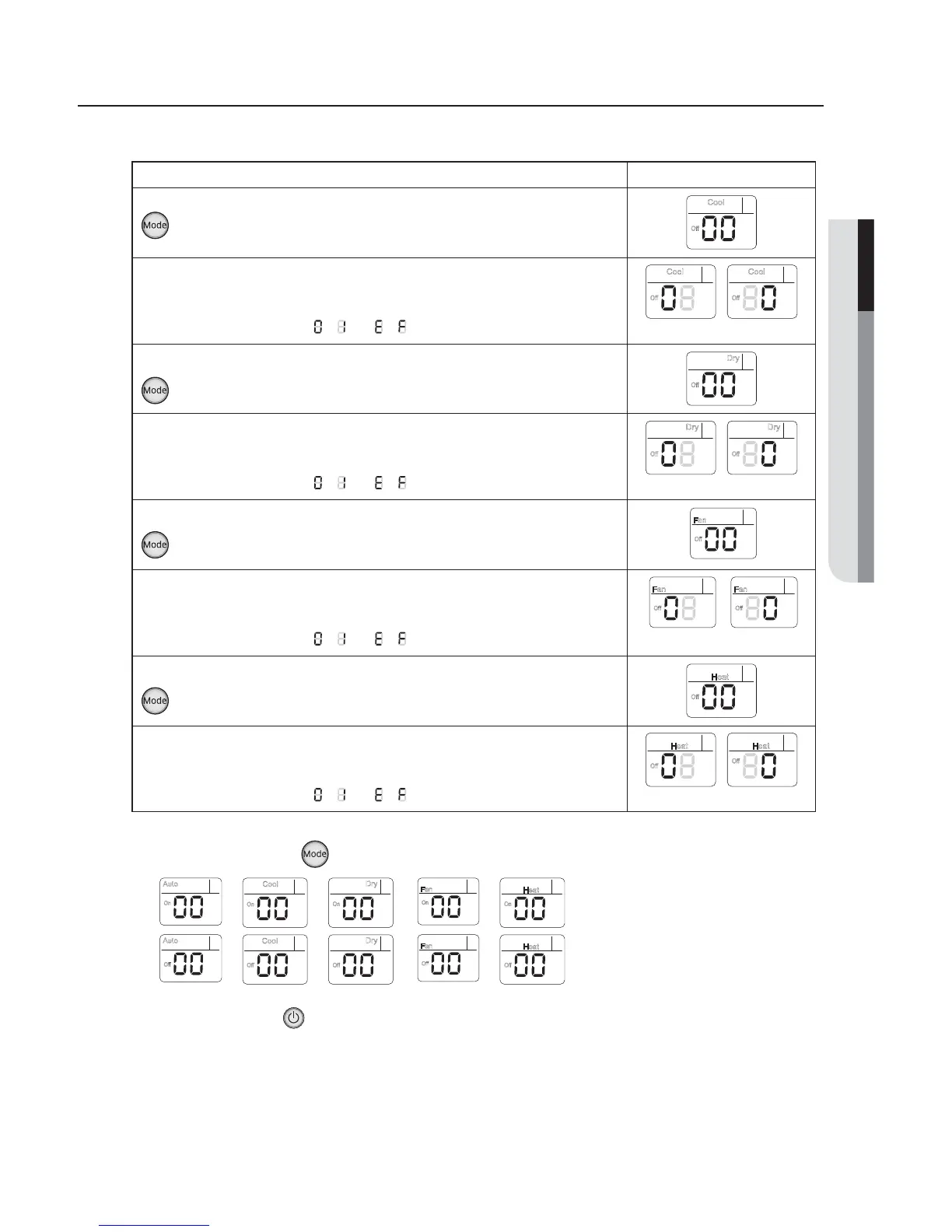 Press Mode button to be change to Dry mode in the OFF status.