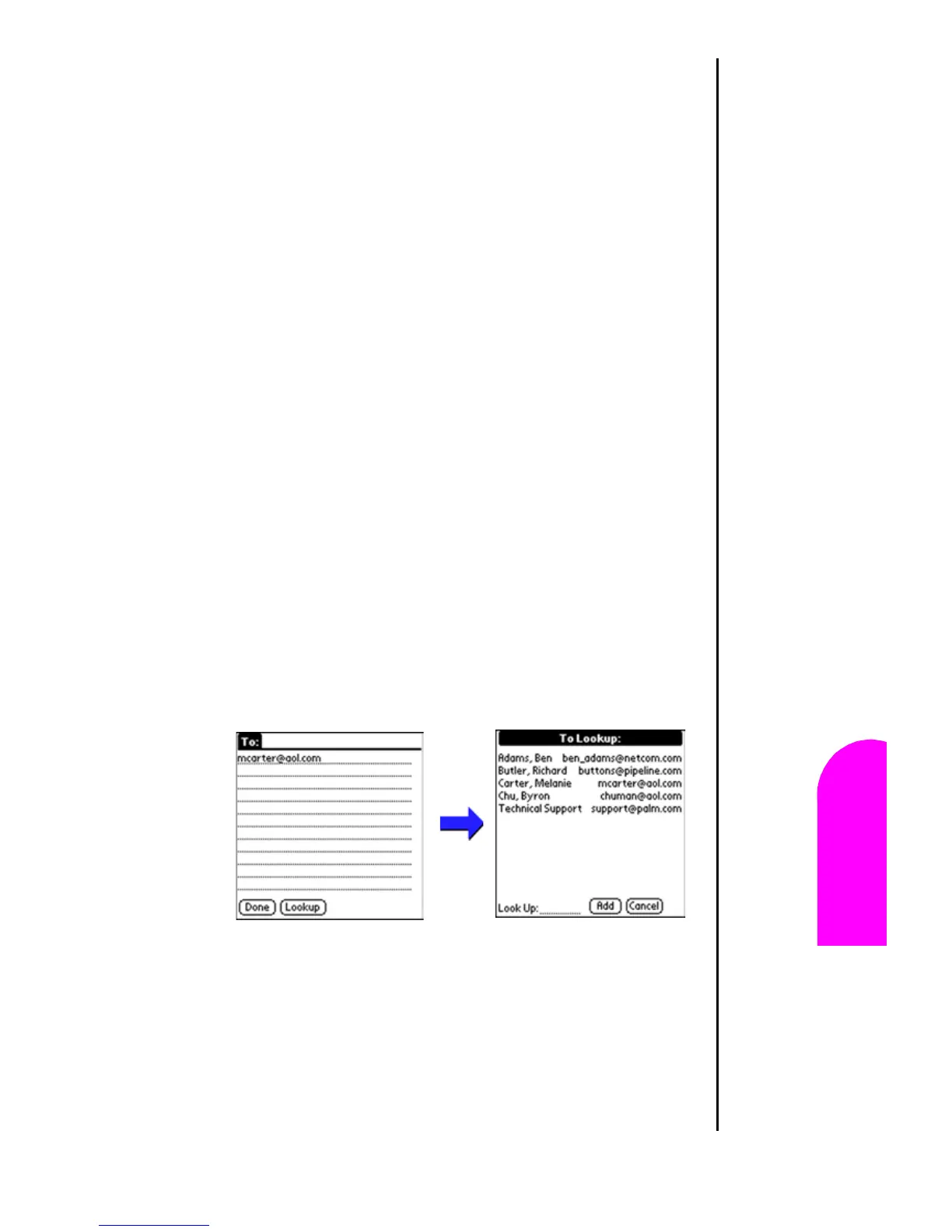 the “To” or “CC” field, or use the “Look Up” command to