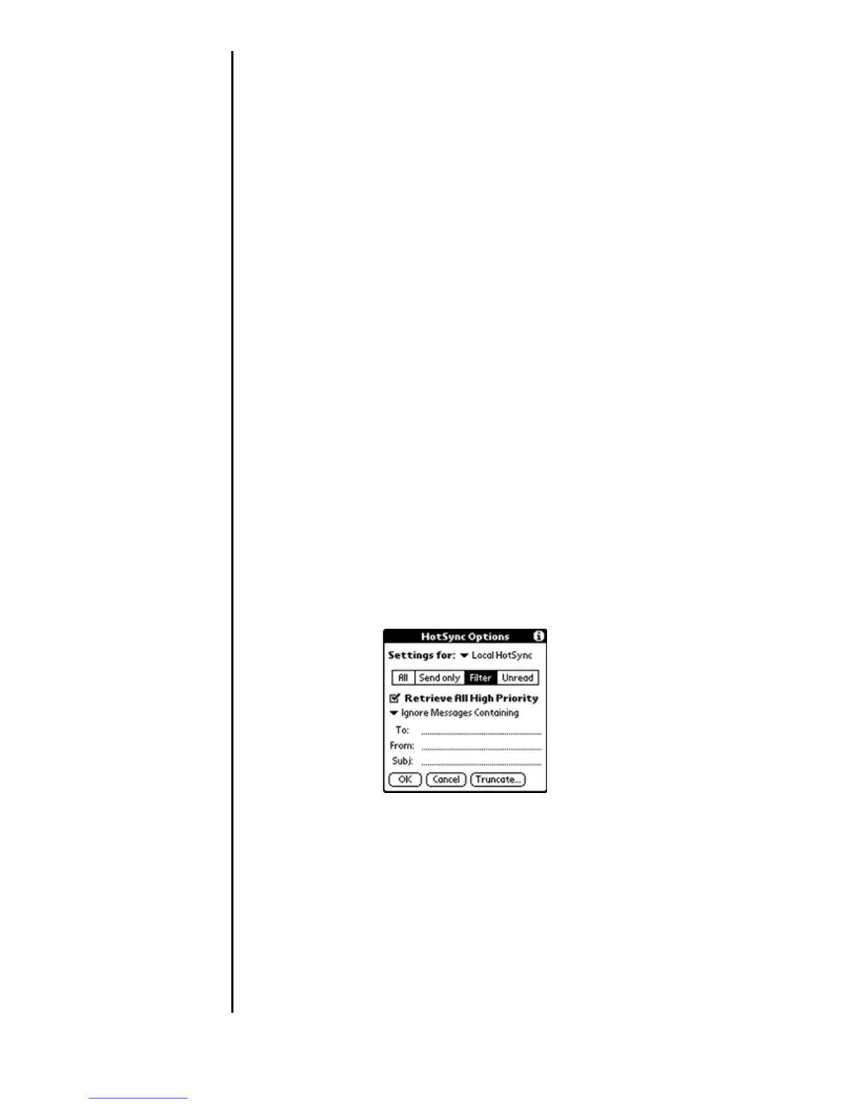 1. Tap the Filter box in the HotSync Options dialog screen.