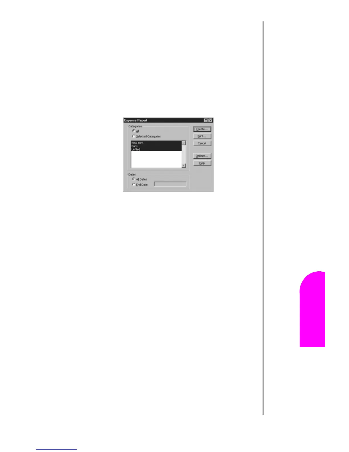 䊳 Select All in the Categories group to print the expenses