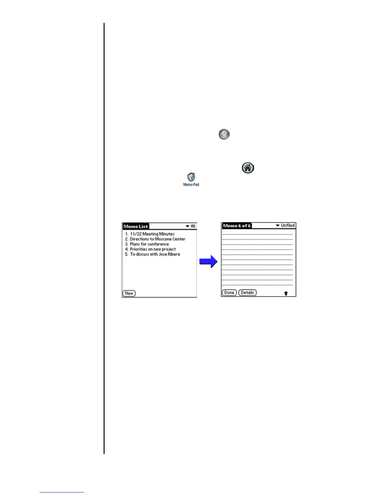 1. To open the Memo Pad application, choose one of the
