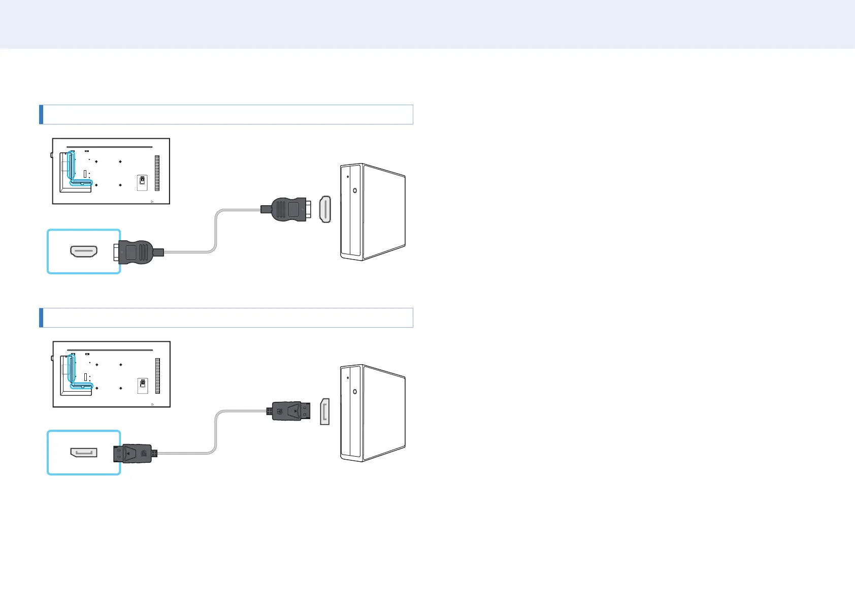 • The DisplayPort interface (DP IN) on the product and the provided DP cable are