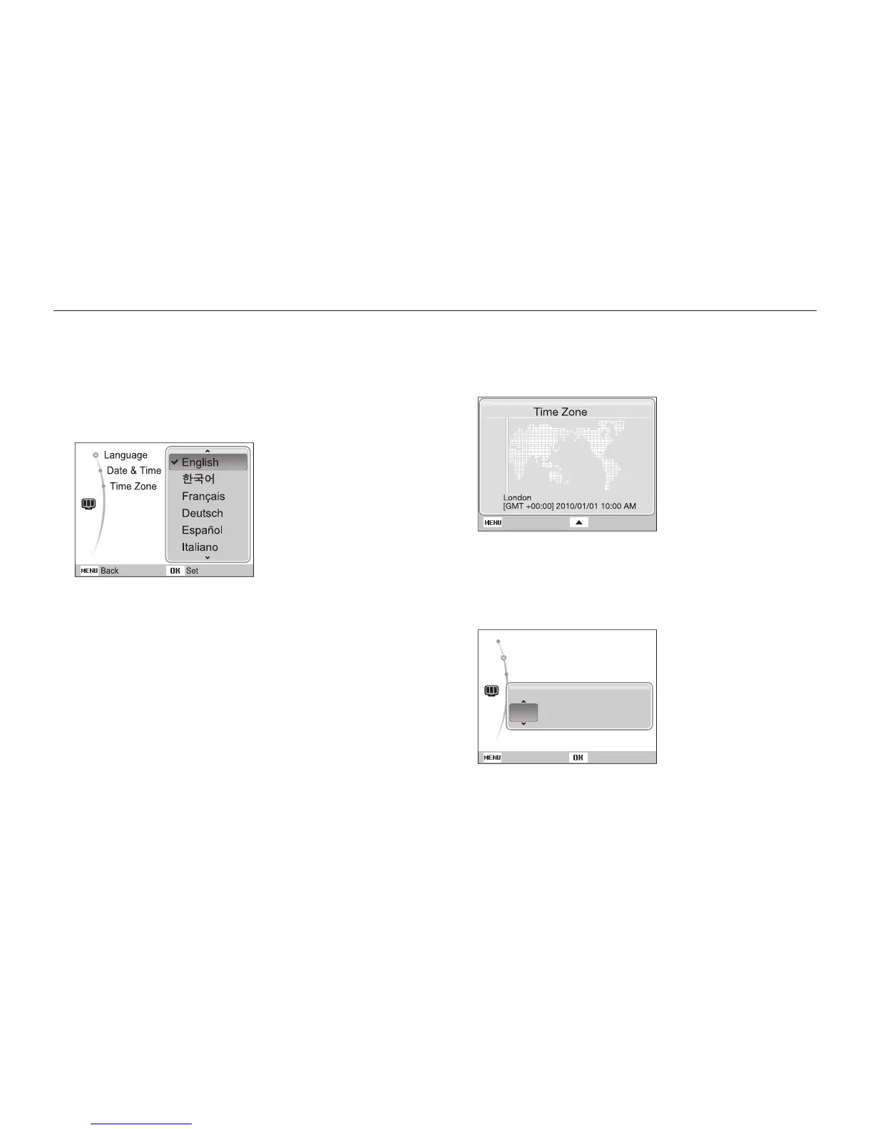 The initial setup screen appears to allow you to configure the camera's basic settings.