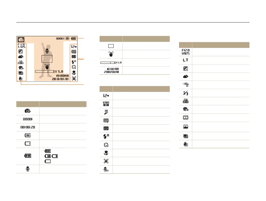 The icons displayed will change according to the mode you select or the options you set.