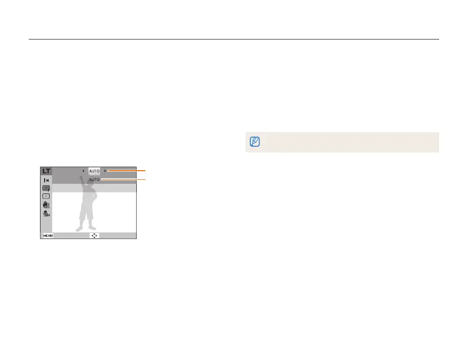If you select AUTO, the aperture value or shutter speed will be