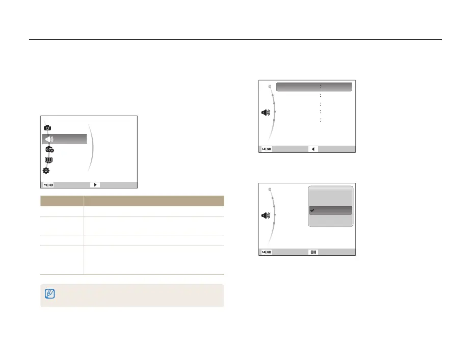 Set various camera sounds and the volume. (p. 95)