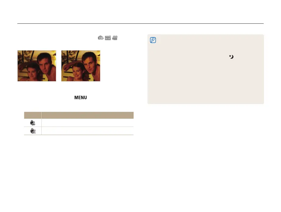 • In some scene modes, the OIS function is unavailable.