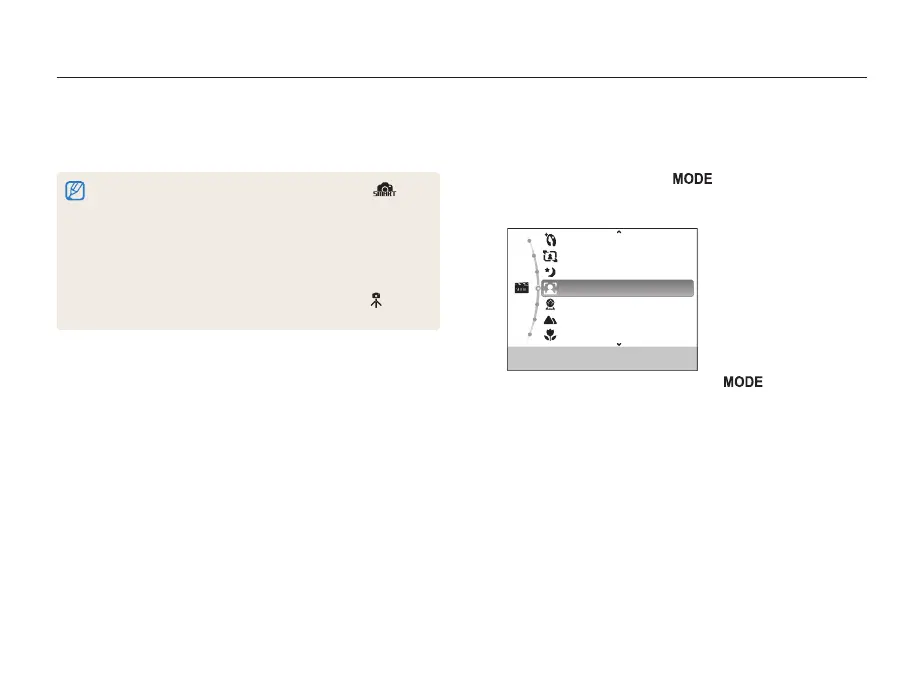 • To change the scene mode, press [ ], and then select