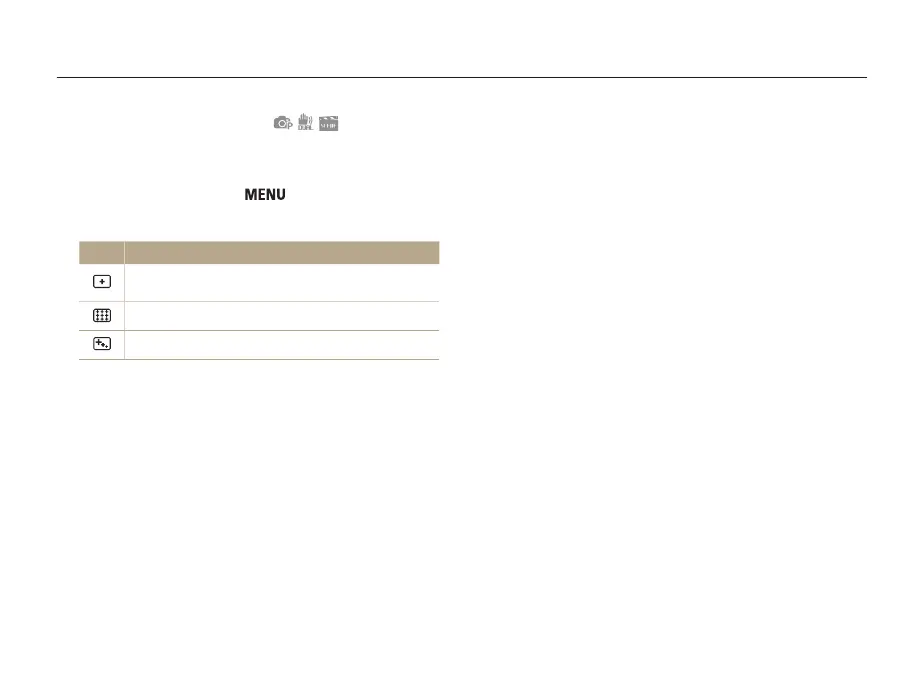 The options may differ depending on the shooting mode.