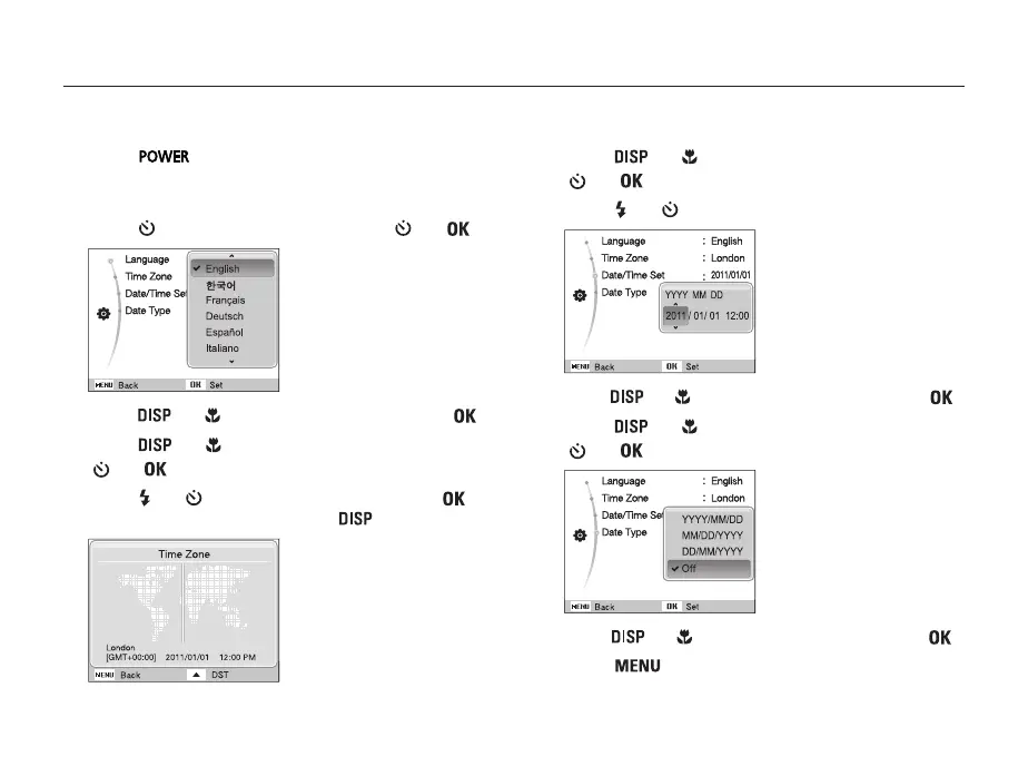 • The initial setup screen appears when you turn on the camera