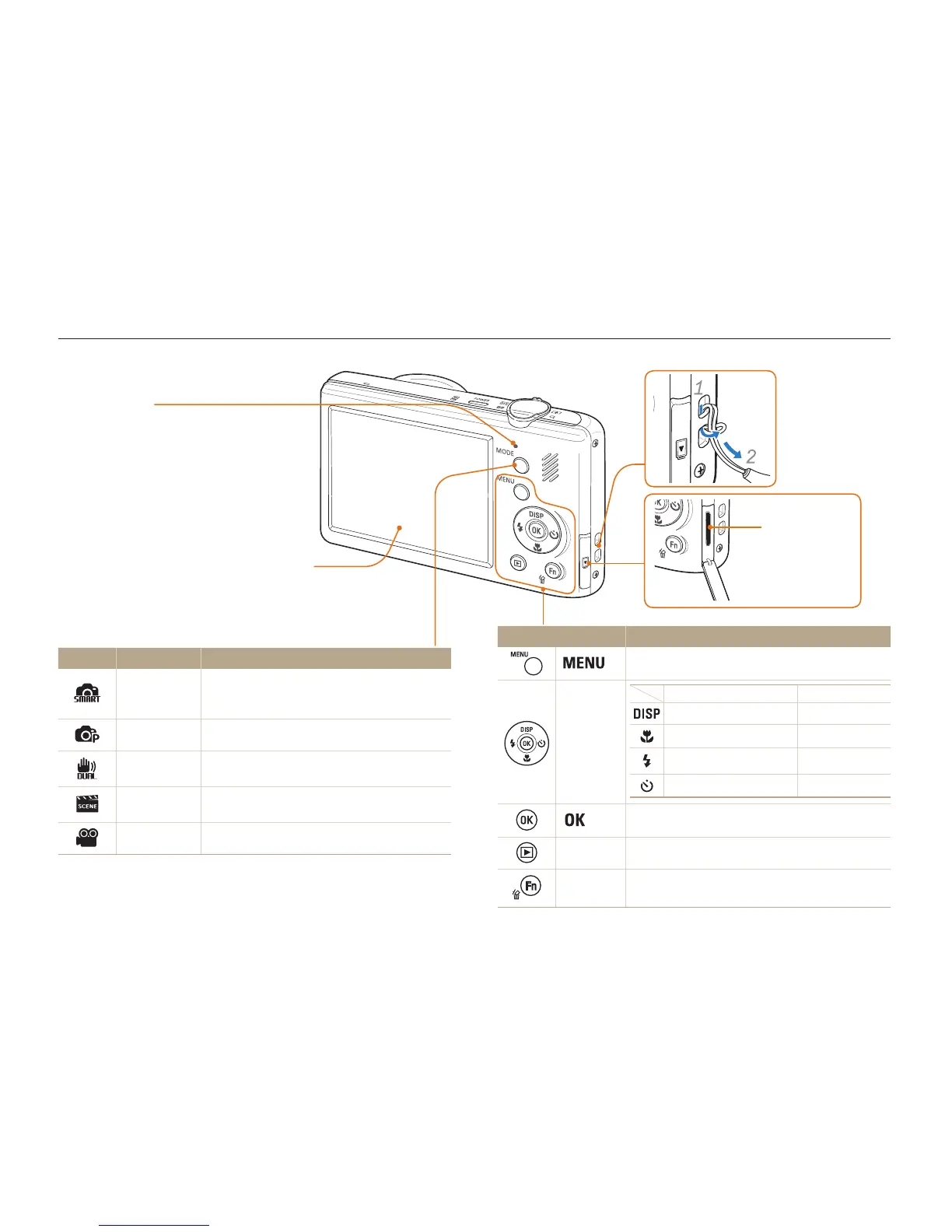 Mode button: Open the list of shooting modes