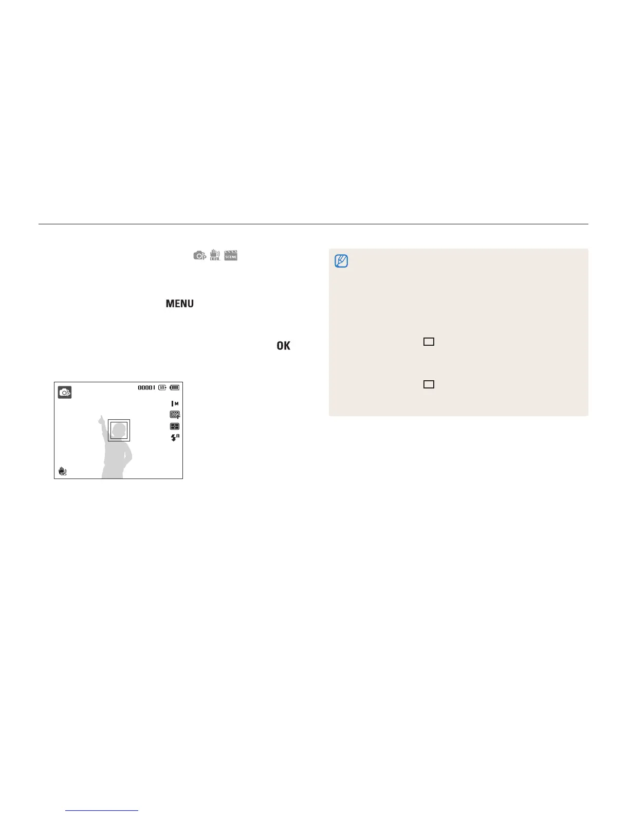 • If the camera fails to fix the focus, the focus frame changes to a red,