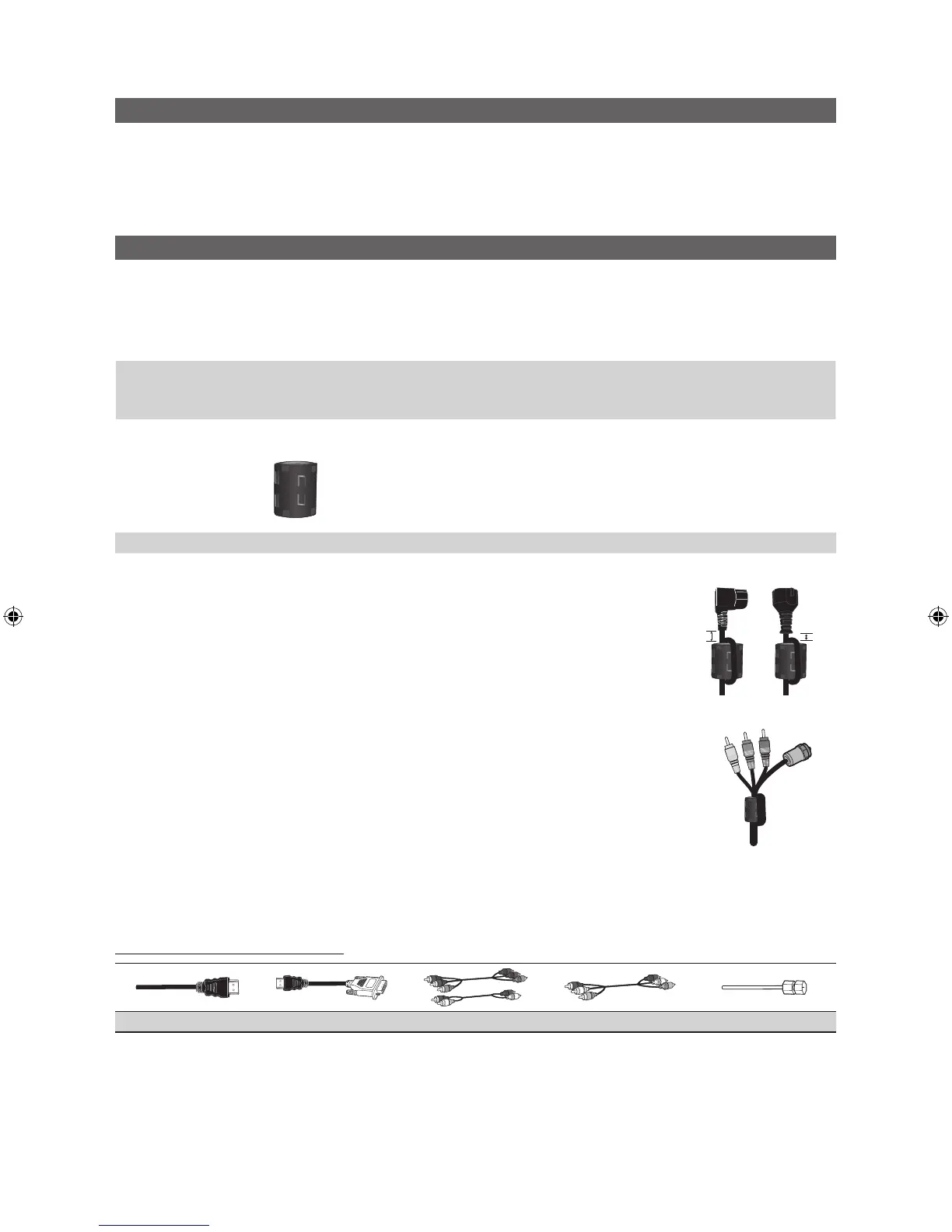 interferencias. Cuando conecte un cable, abra el núcleo de ferrita y sujételo al cable cerca del enchufe, tal