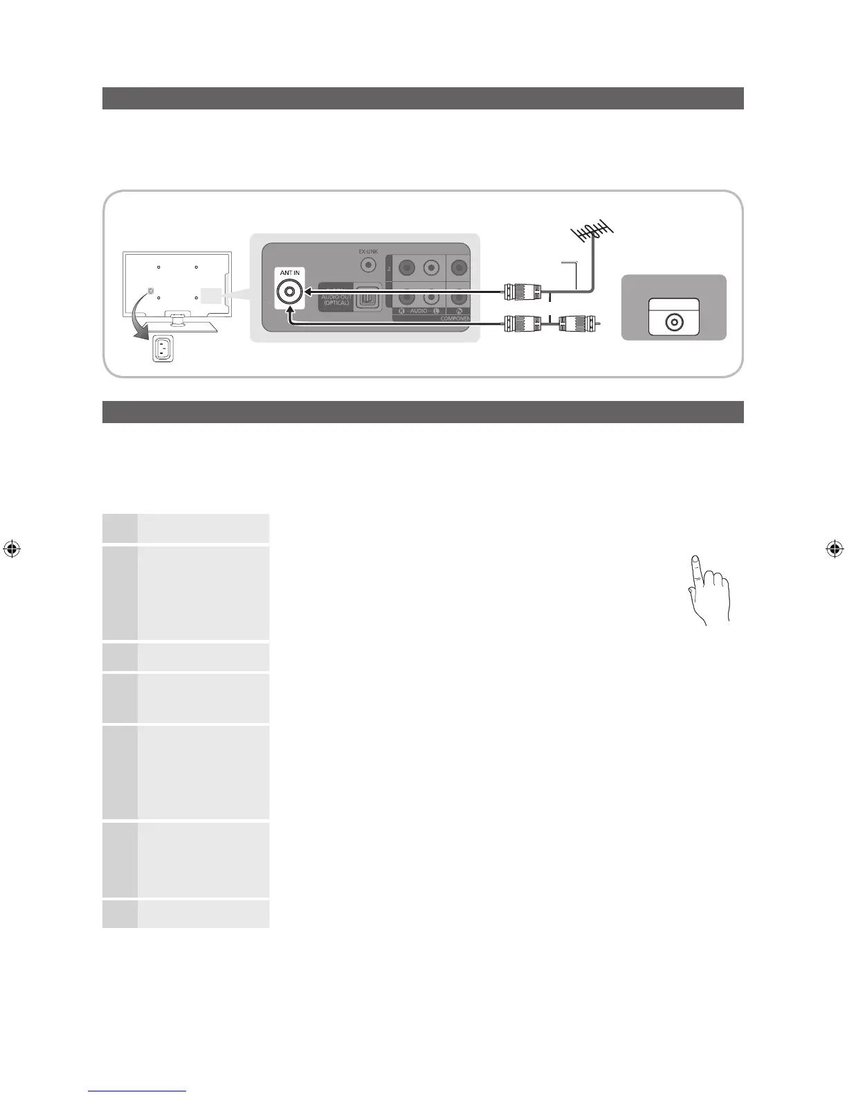 Connecting the power cord and an antenna or cable connection.