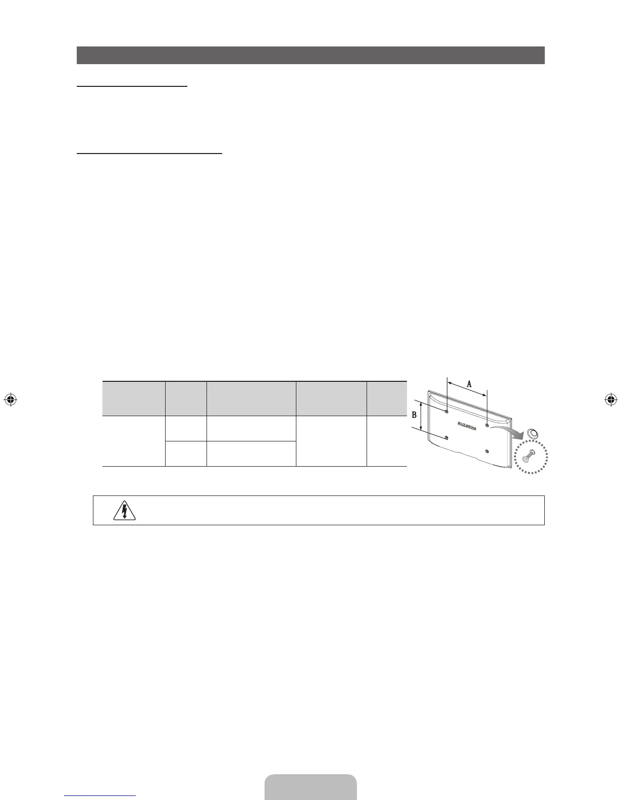 specifications. Screws that are too long may cause damage to the inside of the TV set.
