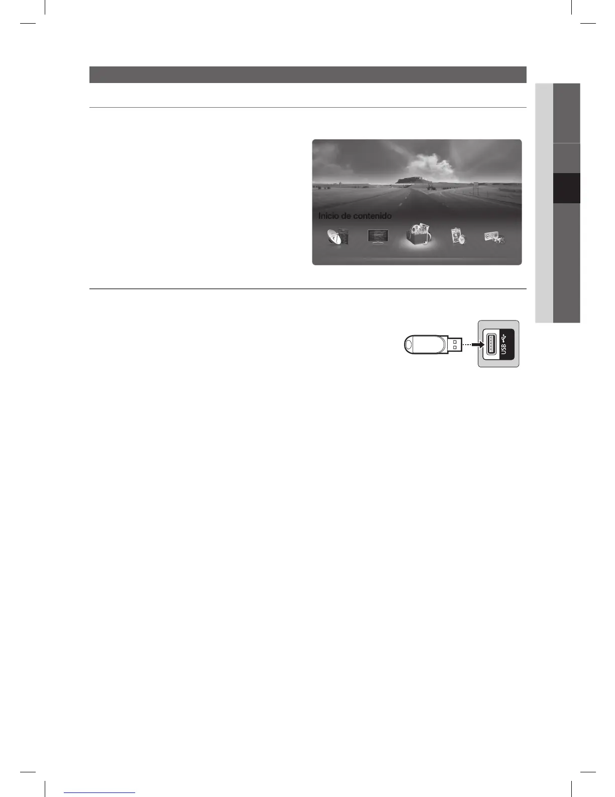 • Contenidos multimedia sólo admite dispositivos USB de clase de almacenamiento masivo (MSC). MSC es un dispositivo