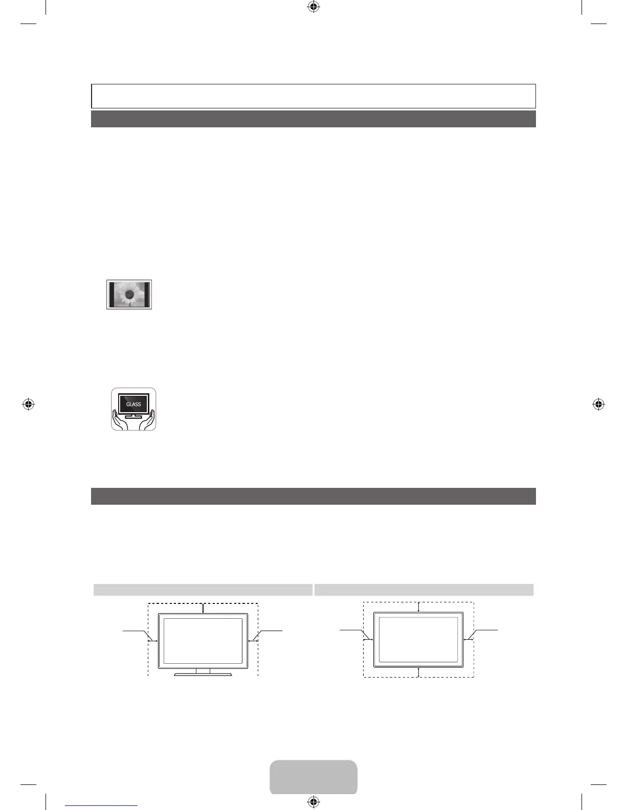 Watching the Plasma TV in 4:3 format for a long period of time may leave traces of the borders on the left, right, top, or bottom of the screen.