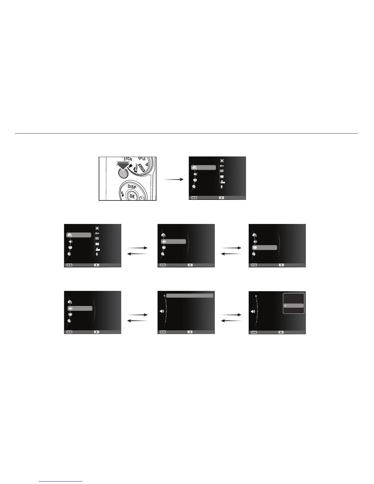 Turn on the camera and press the MENU button. A menu for each camera mode appears.