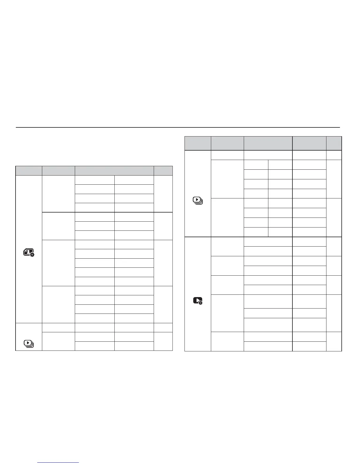 The menus you can set up in Play mode are as follows. To capture an image