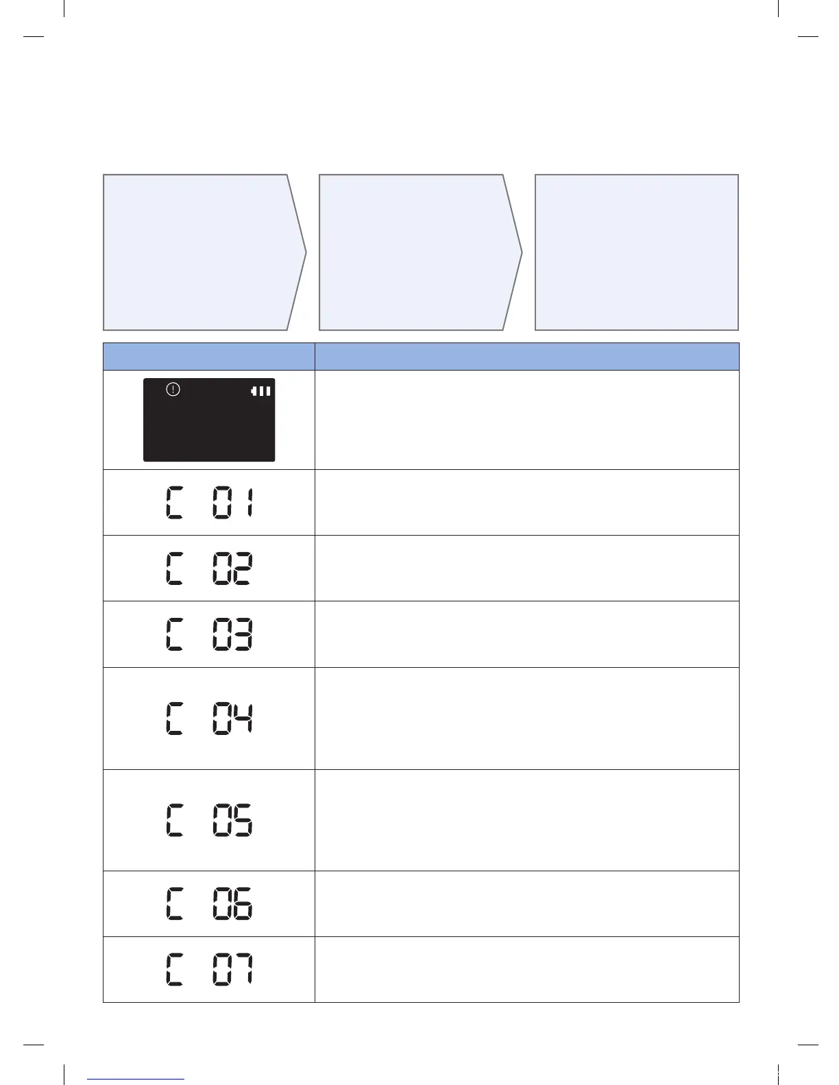 f Si le code d'information ne disparaît pas, vériez l'absence de corps